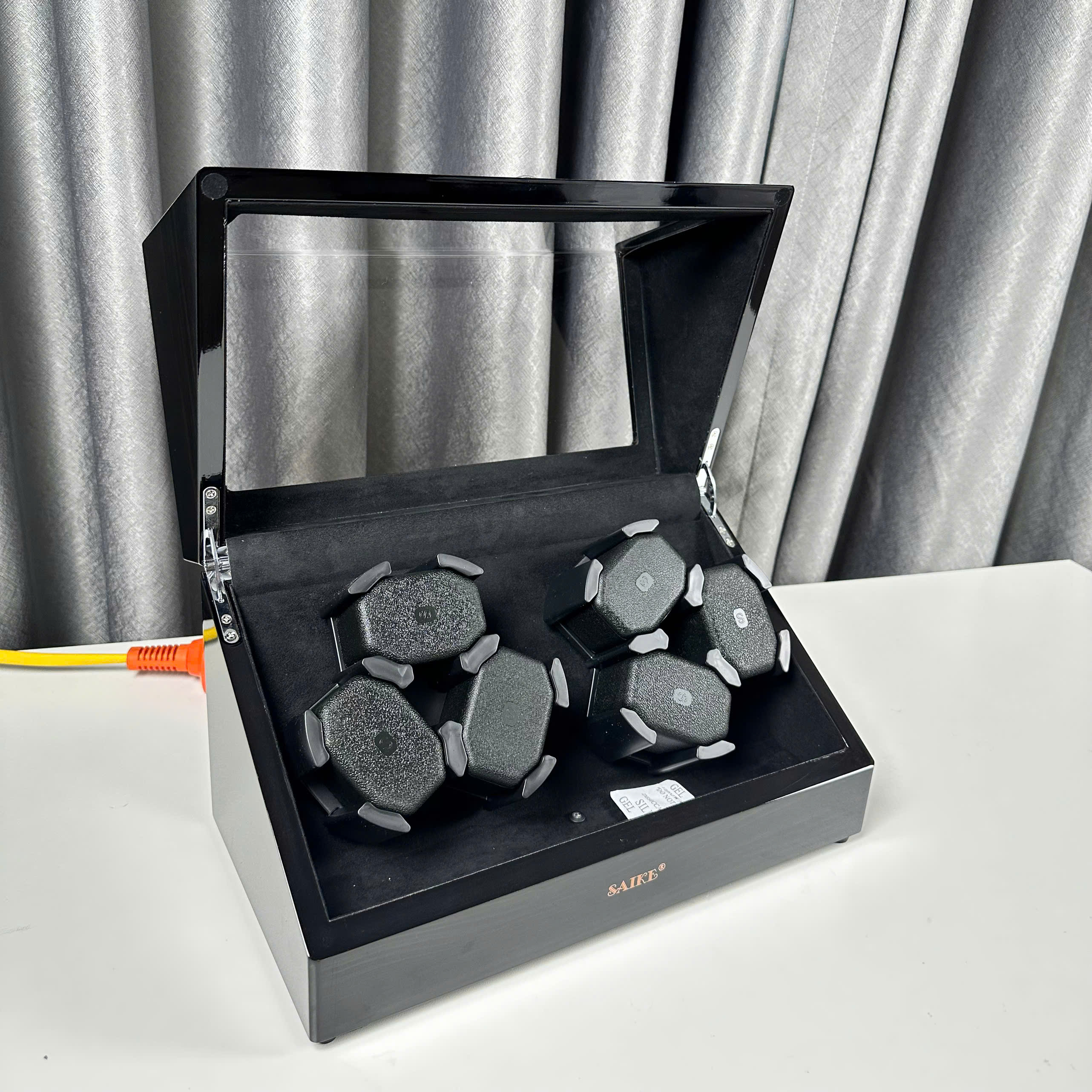 Thông tin sản phẩm: Hộp Đồng Hồ Cơ 6 Xoay + 6 Tĩnh SAIKE Vỏ Gỗ Sơn Vân Gỗ Mun Có Đèn Led - Thương hiệu: SAIKE - Chất liệu: thân phôi là gỗ MDF,
