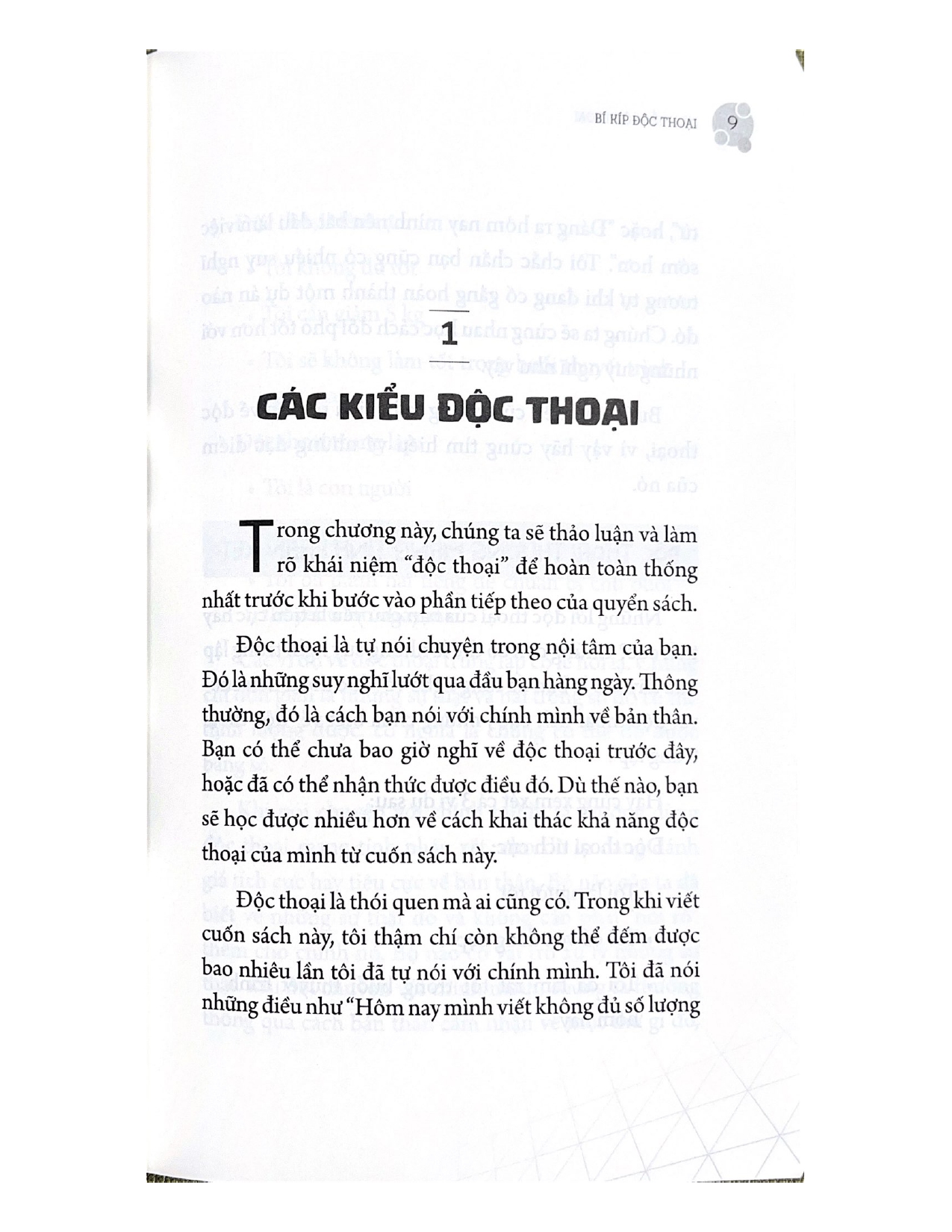 Bí Kíp Độc Thoại-Vanlangbooks I.Giới thiệu sách Bạn muốn đạt được thành công, hài lòng hơn với bản thân và có được cuộc sống trọn vẹn? Nếu vậy, đừng để những suy nghĩ tiêu cực