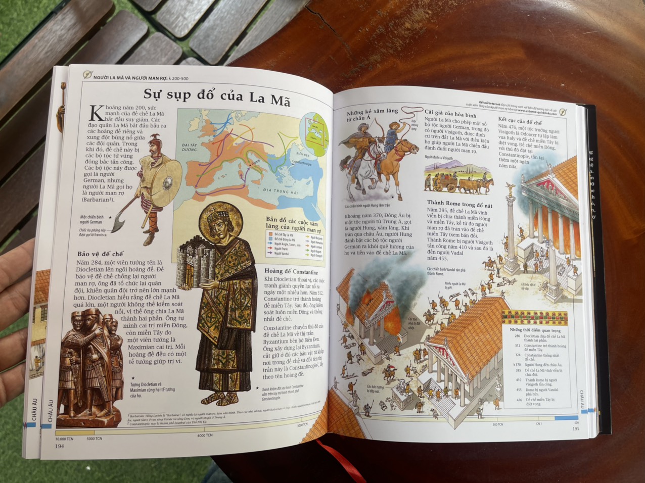 Cuốn sách đã vẽ nên bức tranh rộng lớn tái hiện cuộc sống của các dân tộc trước đây, giới thiệu về các nền văn minh nổi tiếng nhân loại, những nhân vật biến đổi thế giới, những sự kiện thay đổi tiến trình lịch sử… Với hàng nghìn minh họa ấn tượng và các bản đồ chi tiết, bạn đọc sẽ dễ dàng hình dung chủ đề đang được đề cập.