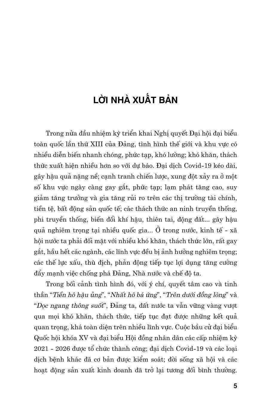 Trong bối cảnh đại dịch COVID-19 diễn biến phức tạp, tác động đến toàn thế giới, trong nước cũng ảnh hưởng rất nặng nề, song sự định hướng mang tầm chiến lược của Trung ương Đảng, đứng đầu là đồng chí Tổng Bí thư là động lực quan trọng để toàn Đảng, toàn dân ta vượt qua khó khăn, thử thách, nhanh chóng cụ thể hoá, triển khai Nghị quyết và những mục tiêu của Đại hội XIII với quyết tâm cao nhằm tạo ra bước đột phá, biến thách thức thành cơ hội, tận dụng mọi thời cơ, tranh thủ mọi điều kiện, hoàn thành các kế hoạch đề ra với kết quả cao nhất.