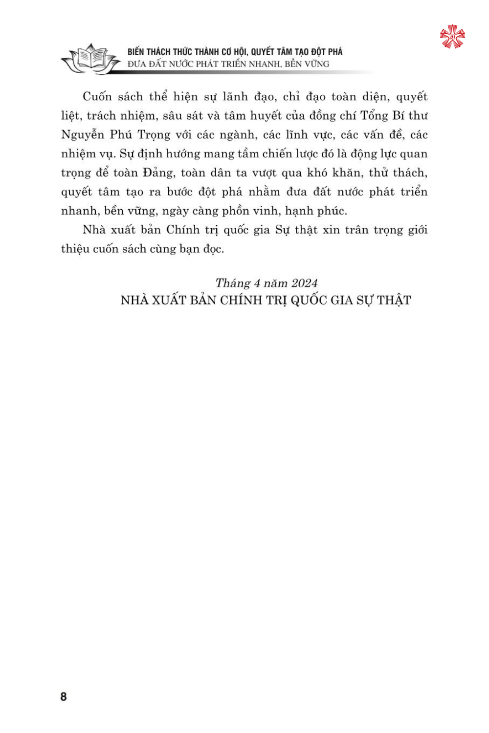 ✨Biến thách thức thành cơ hội. Quyết tâm đột phá đưa đất nước phát triển nhanh, bền vững (bản in 2024)