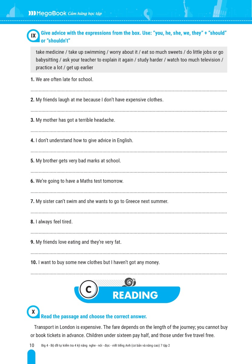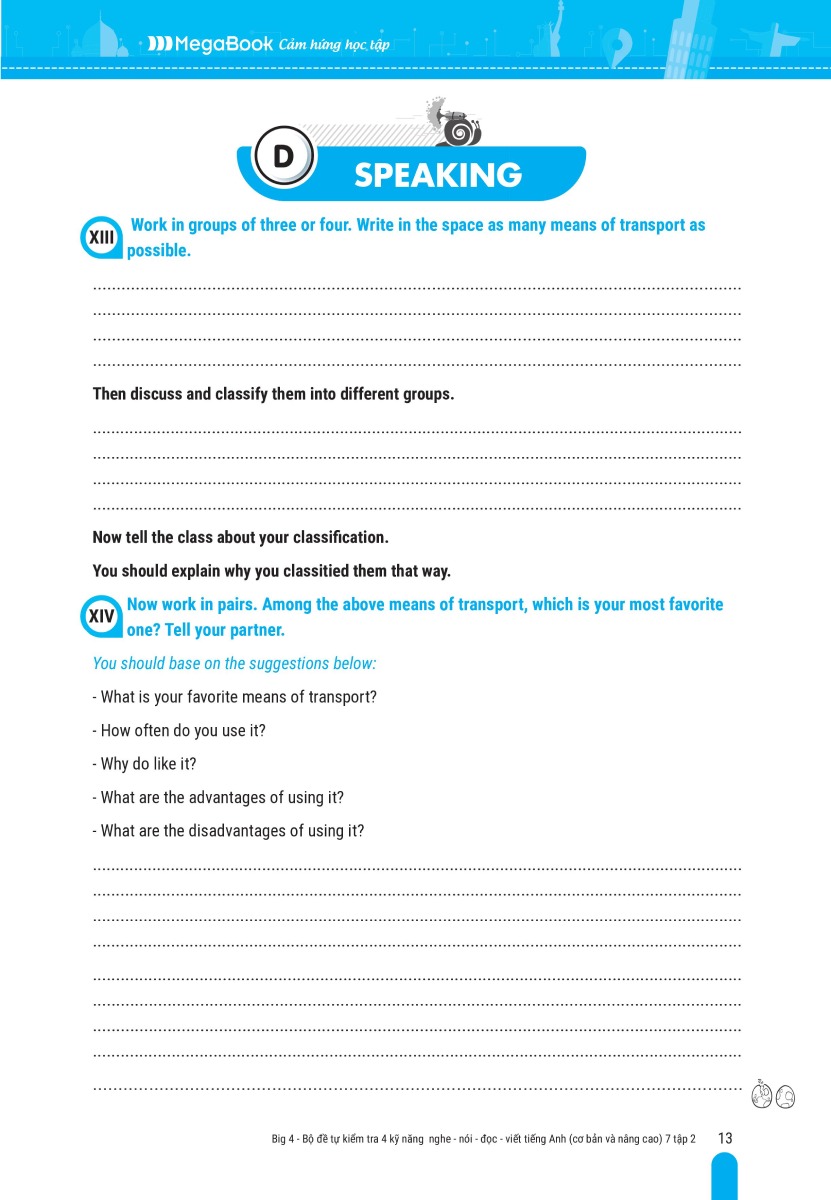 Big 4 bộ đề tự kiểm tra 4 kỹ năng Nghe - Nói - Đọc - Viết TA (cơ bản và nâng cao) lớp 7 tập 1
