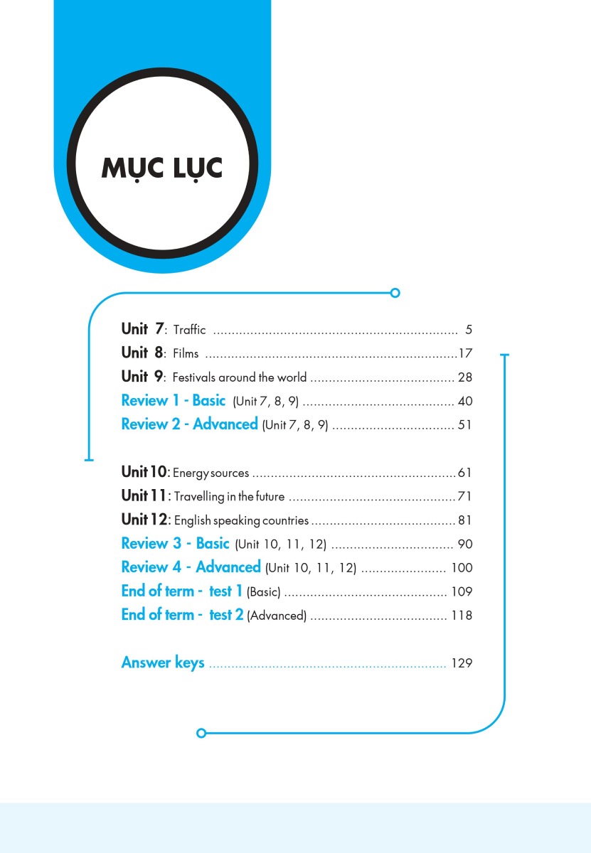 Bài tập được phân chia theo 2 cấp độ, cơ bản và nâng cao. Hệ thống bài tập luyện 4 kỹ năng cơ bản giúp các em ôn tập kiến thức trên lớp; bài tập mở rộng, nâng cao để các em rèn luyện và làm quen với các kì kiểm tra, đánh giá.