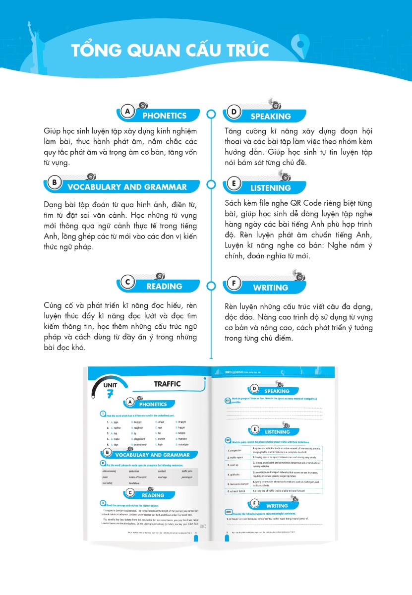 Các bài tập về 4 kỹ năng được liên kết với nhau theo logic bài học giúp cảm em cảm thấy tự tin và phát triển toàn diện kỹ năng nghe, nói, đọc, viết tiếng Anh