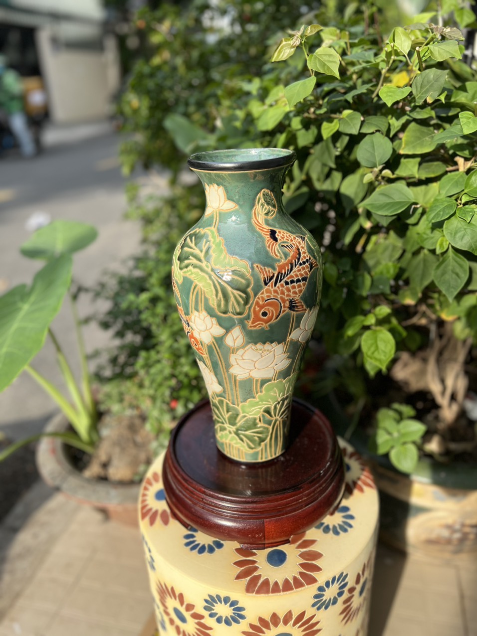 ✨BÌNH BÁCH HOA & SEN CÁ DÁNG THON 37CM GỐM SỨ THỦ CÔNG NAM BỘ