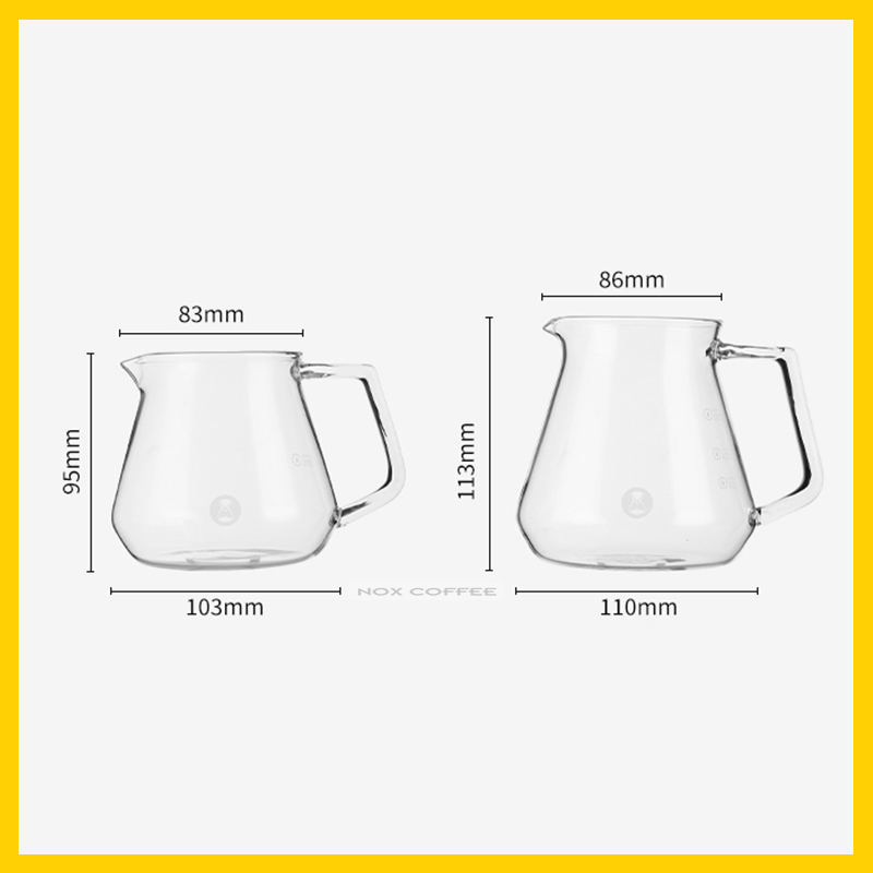 Thông tin sản phẩm: - Dung tích: 360ml, 600ml - Kích thước: 103*95mm / 110*113mm - Trọng lượng: 242 / 268g - Chất liệu: thủy tinh borosilicate, silicon - Thương hiệu: Timemore Mô tả chi