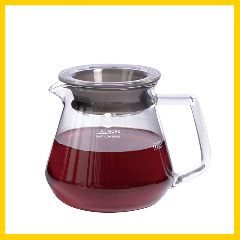 Bình đựng Timemore được làm từ chất liệu thủy tinh borosilicate cao cấp, giữ nhiệt và chịu nhiệt ổn định, độ hoàn thiện chắc chắn tuyệt đối an toàn.