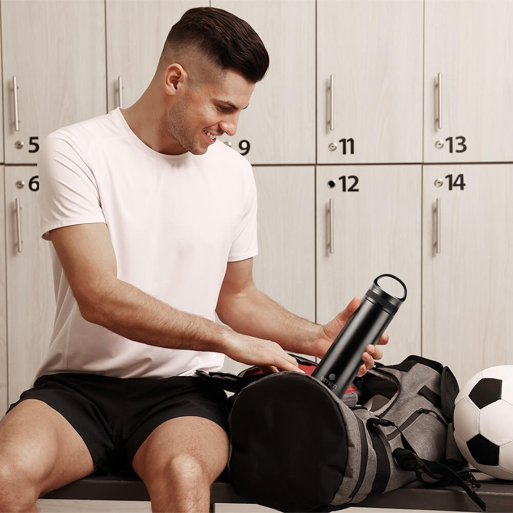 - Thép không gỉ 304 hợp vệ sinh - Nắp vặn không lo lắng về việc rò rỉ nước - Quai xách silicone thuận tiện mang đi và có thể tháo rời giúp dễ dàng