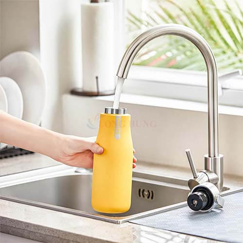- Thép không gỉ 304 hợp vệ sinh - Nắp vặn không lo lắng về việc rò rỉ nước - Quai xách silicone thuận tiện mang đi và có thể tháo rời giúp dễ dàng