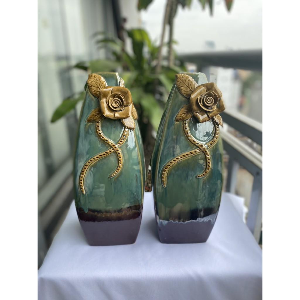 - Sản phẩm gồm 2 bình cao 32cm - Chất liệu: Gốm men rạn Bát Tràng - Sản phẩm được đắp nổi thủ công bằng tay bởi những người nghệ nhân làng gốm. Lấy cảm