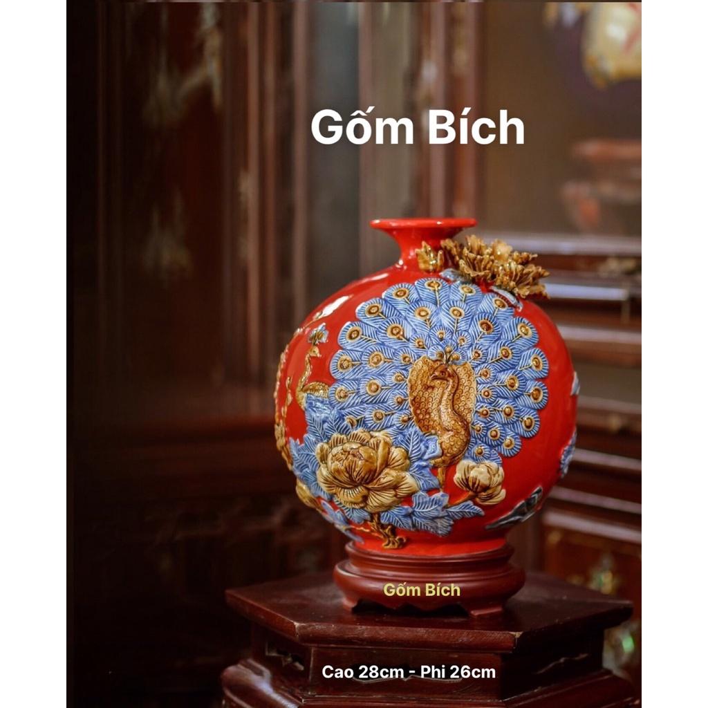 Lọ Lộc Bình Men Rạn Đắp Nổi được làm thủ công bởi bàn tay nghệ sĩ của những nghệ nhân làng gốm Bát Tràng Kích thước :Chiều cao 42cm Phù hợp với những ban thờ