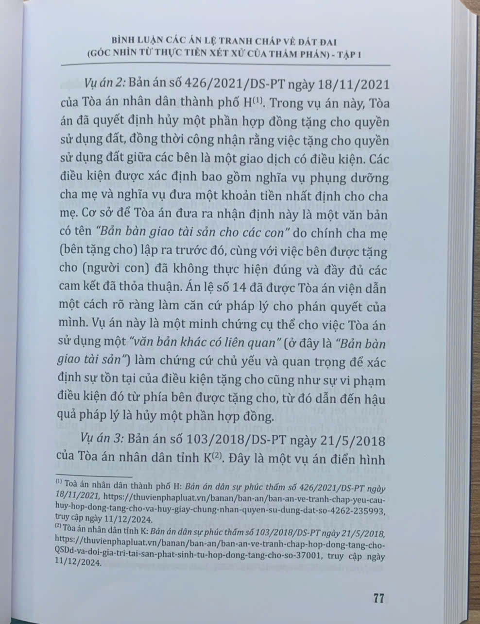 Bình luận các án lệ tranh chấp về đất đai – Góc nhìn từ thực tiễn xét xử của Thẩm phán (tập 1 và 2) Tập 1- Các án lệ về hợp đồng dân sự