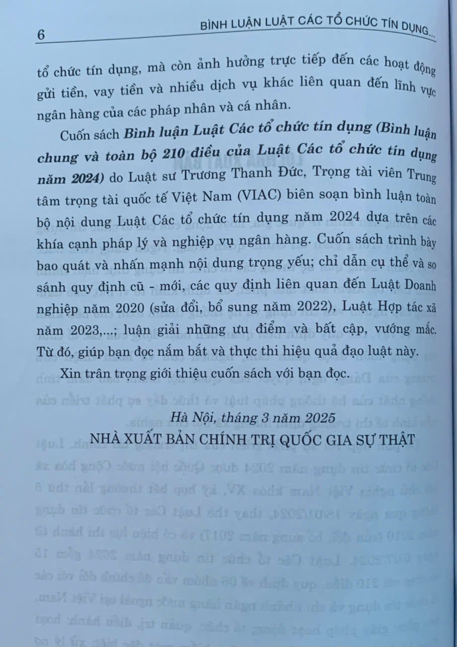 Cuốn sách Bình luận Luật Các tổ chức tín dụng năm 2024 do Luật sư Trương Thanh Đức – Trọng tài viên Trung tâm Trọng tài Quốc tế Việt Nam (VIAC) – biên soạn là tài liệu pháp lý và nghiệp vụ ngân hàng toàn diện – cập nhật – dễ tiếp cận dành cho mọi đối tượng quan tâm đến lĩnh vực tín dụng và ngân hàng.