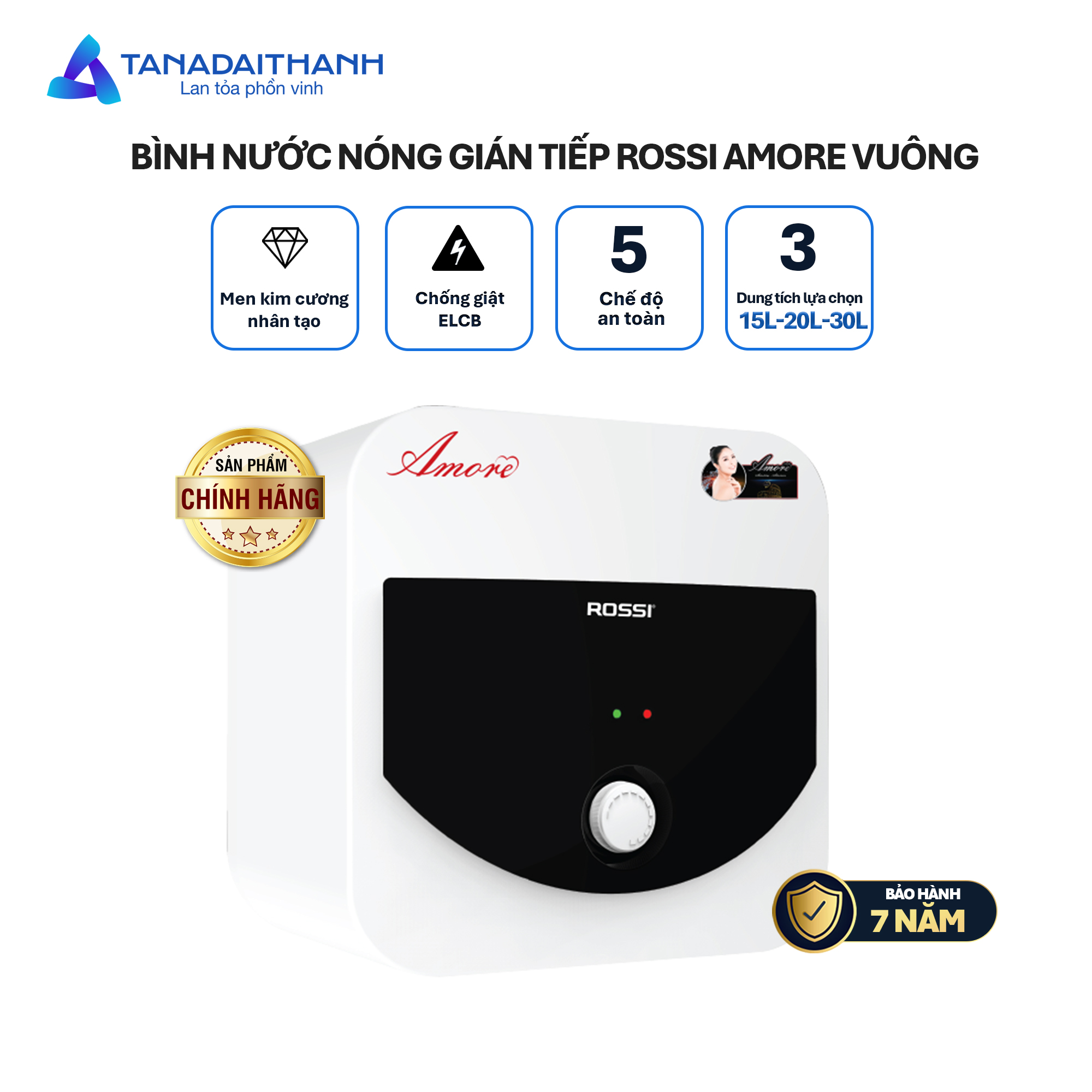 Mua tại TiktokBình Nước Nóng Gián Tiếp Rossi Amore Dáng Vuông Dung Tích 15L 20L 30L Chính Hãng Bảo Hành Ruột Bình 7 Năm LƯU Ý: