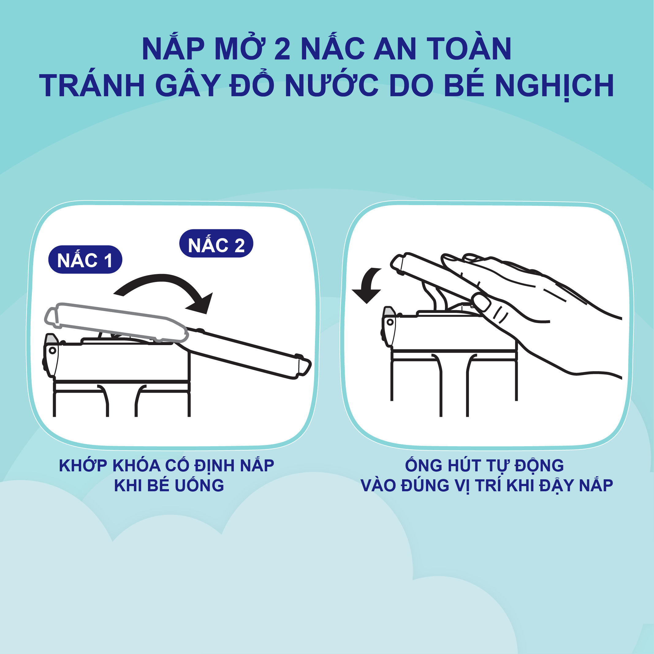 Đặc điểm sản phẩm - Nhựa PP an toàn, không chứa BPA, chịu nhiệt 120 độ C - Thiết kế phù hợp, vừa khuôn miệng - Tay cầm an toàn, chắc chắn - Quy cách: