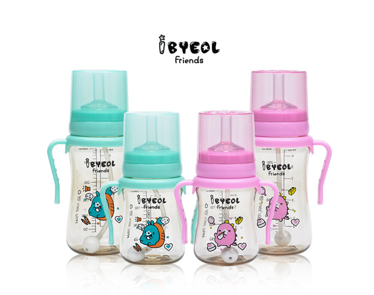 Bình ống hút tập uống cho bé IBYEOL Friends PPSU chính hãng Hàn Quốc 200ml/300ml Dòng bình ống hút từ Hàn Quốc với thiết kế đơn giản, tinh tế, dáng cổ rộng đem đến sự
