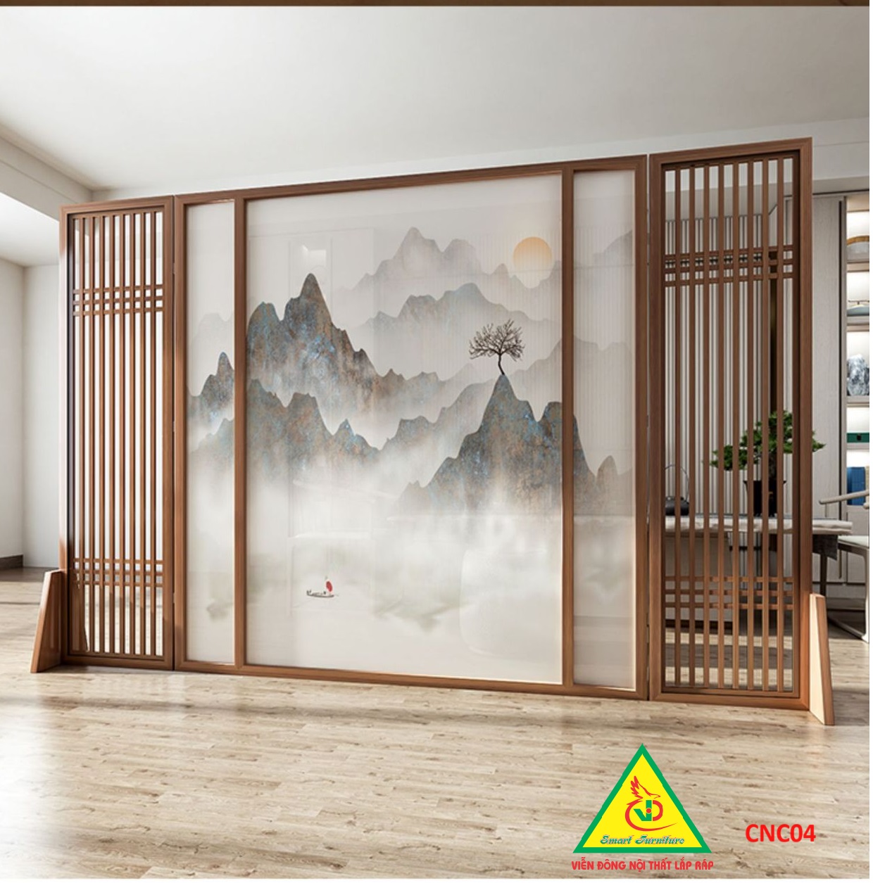 Phân chia không gian: Bình phong gỗ khung tranh giúp tạo ra các không gian riêng tư, phân chia các khu vực chức năng trong một căn phòng lớn mà không cần xây tường.