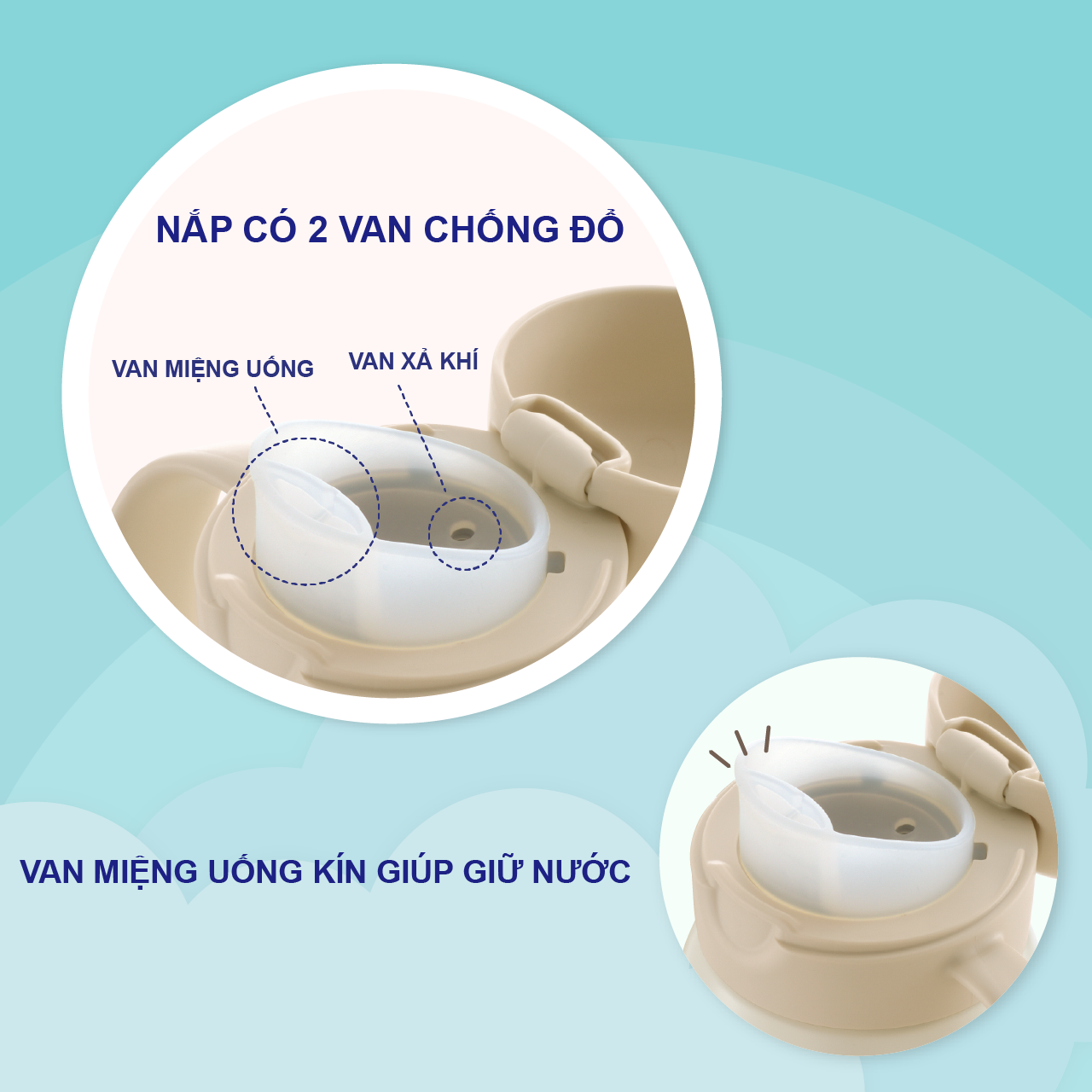 Đặc điểm sản phẩm - Nhựa PP an toàn, không chứa BPA, chịu nhiệt 120 độ C - Thiết kế phù hợp, vừa khuôn miệng - Tay cầm an toàn, chắc chắn - Quy cách: