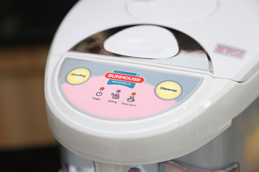 Bình Thủy Điện Sunhouse SH1535 (3.5L) Bình Thủy Điện Sunhouse SH1535 (3.5L) có chức năng giữ ấm ở nhiệt độ lên đến 90 độ C, giúp duy trì nước nóng liên tục trong bình tiện sử dụng để pha trà, cà phê hoặc pha nước tắm cho bé,… Bình được thiết kế với 1 nút nhấn ở nắp, 1 nút nhấn điện tử và 1 nút chạm cốc để bạn có thể dễ dàng nhấn nút và lấy nước trực tiếp ở miệng vòi rất nhanh chóng. Các tính năng nổi bật