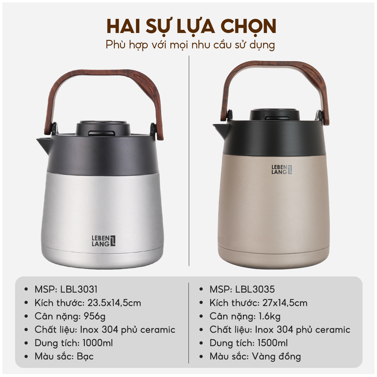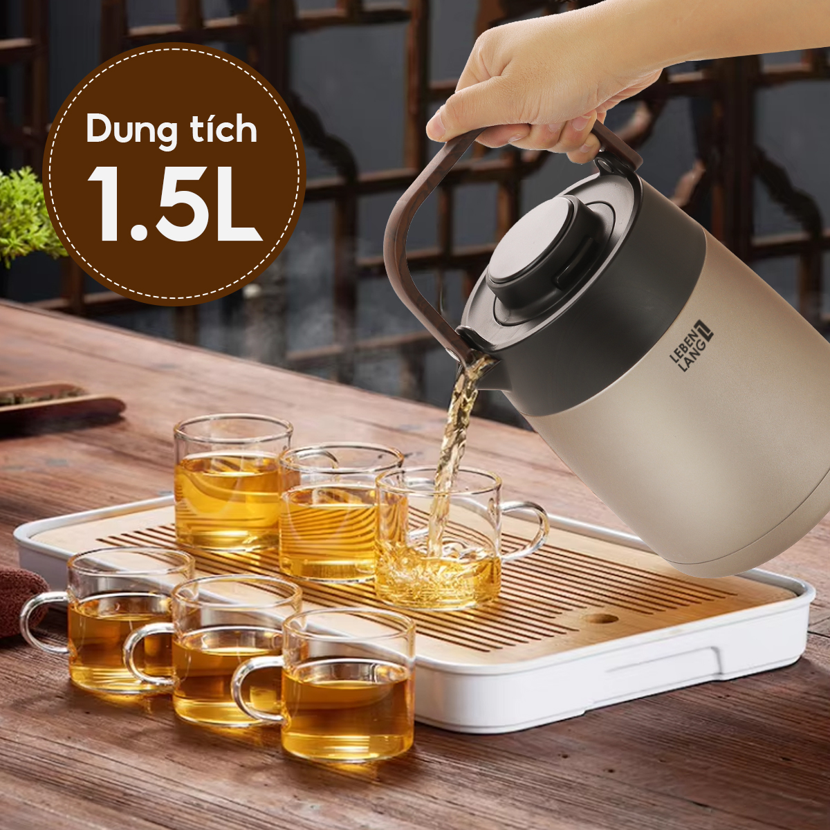 Mua tại TiktokBình Trà Giữ Nhiệt LEBENLANG LBL3035 1.5L – Inox 304 & Ceramic – Có Lọc Trà – Hiển Thị Nhiệt Độ