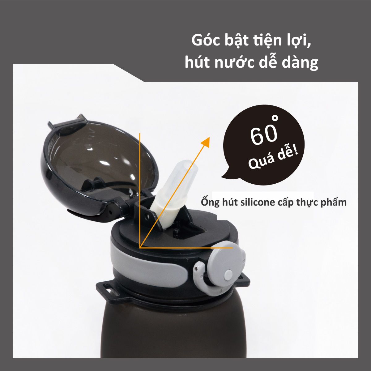 - Chất liệu nhựa PP và silicone cao cấp, không chứa BPA, an toàn cho sức khỏe của bé; - Thiết kế tiện dụng, ống hút sẽ bật ra ngay khi bạn nhấn, sử dụng