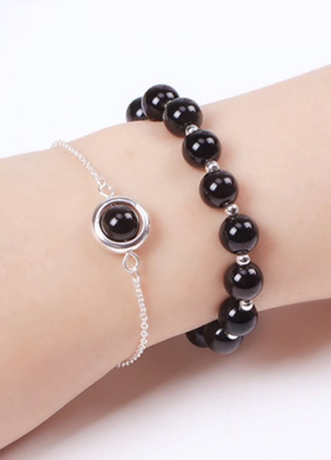 Bộ 2 vòng tay phong thủy đá thạch anh đen 8mm mix bi tròn cao cấp cho Nữ cầu Lộc Tài Duyên