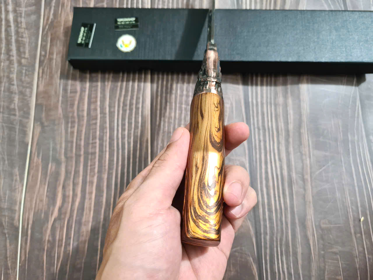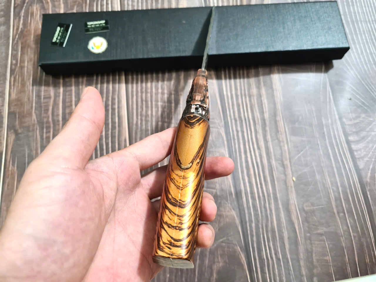 • Chất liệu: Thép Nhật 420J2, độ cứng 53HRC – siêu bền, chống gỉ • Lưỡi dao: Dày 2.5mm, sắc bén, hoàn thiện bằng đá mài nước • Tay cầm: Gỗ Pakka sang trọng, chống