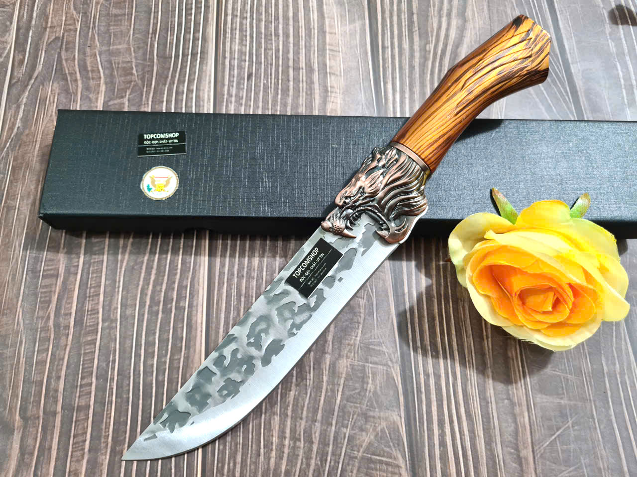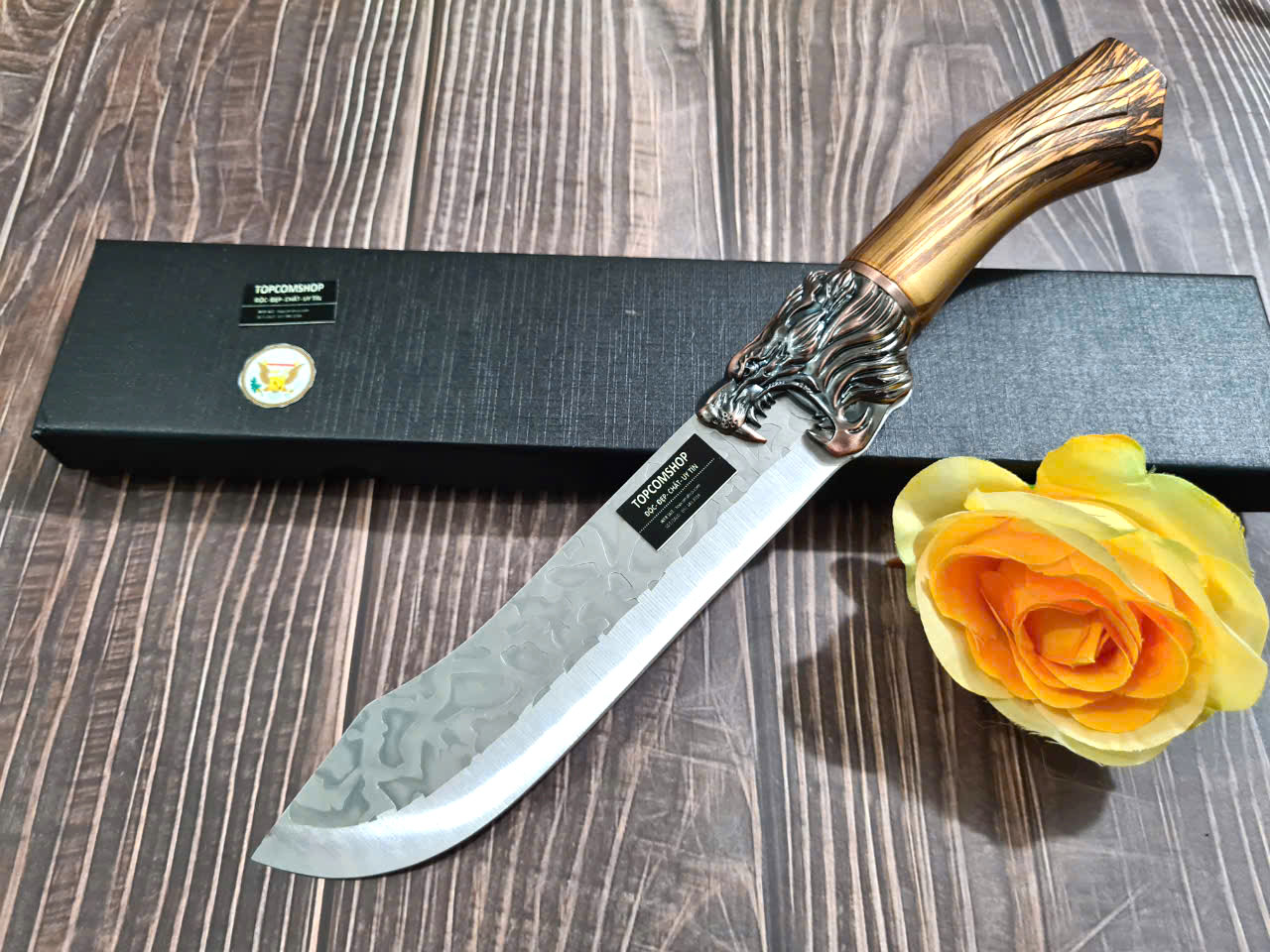 D SỐ 1 : TỔNG DÀI : 29cm, LƯỠI: 14cm,RỘNG : 4.5cm, dày: 3mm, NẶNG : 1.5 lạng, CHẤT liệu lưỡi: 4Cr13MOV (thép 4 crom 13 molypden vanadi).Chất liệu CÁN: nhựa abs xịn . khâu đầu rồng và chuôi bằng thép 4cr13