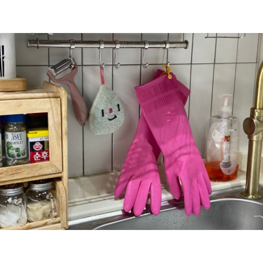 Mua tại Tiktok[COMBO3] Bộ 3 đôi Găng tay cao su rửa chén nhà bếp xuất Hàn Quốc siêu dai có móc treo L-38cm