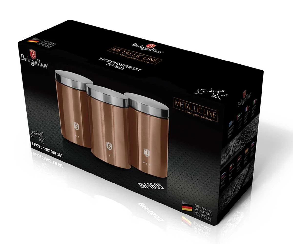 ✨Bộ 3 hộp đựng Berlinger Haus BH/6720 - vàng hồng trơn Hàng chính hãng