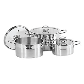 Với bộ nồi này, bạn có thể sử dụng được với nhiều loại bếp khác nhau, kể cả bếp điện từ. Đặc biệt, bạn có thể thoải mái sử dụng bộ nồi trong máy rửa bát mà không lo sản phẩm bị móp méo. Bộ sản phẩm gồm 3 nồi với đường kính 16cm - 20cm - 24cm phù hợp với nhu cầu nấu nướng của mọi gia đình.