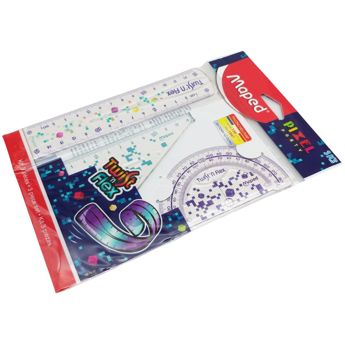 Bộ 3 Thước Học Sinh Cuộn Mềm Pixel Party - Maped 981835 được làm từ chất liệu nhựa cao cấp, bền và có độ dẻo nhất định nên khó gãy. Sản phẩm gồm 3 loại thước thường dùng trong học tập hoặc vẽ kiến trúc: thước thẳng, thước tam giác, thước đo độ. Thước được in ấn rõ nét từng chữ số, không phai mờ khi sử dụng lâu dài. Thước có màu sắc đẹp mắt, tạo sự tươi mới cho không gian bàn học, bàn làm việc.