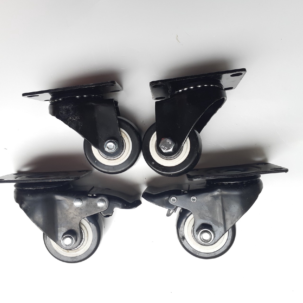 - Bộ 4 bánh xe đẩy hàng xoay 360 độ, có khóa chống xoay chống trượt loại 5cm nhóm màu viền đen