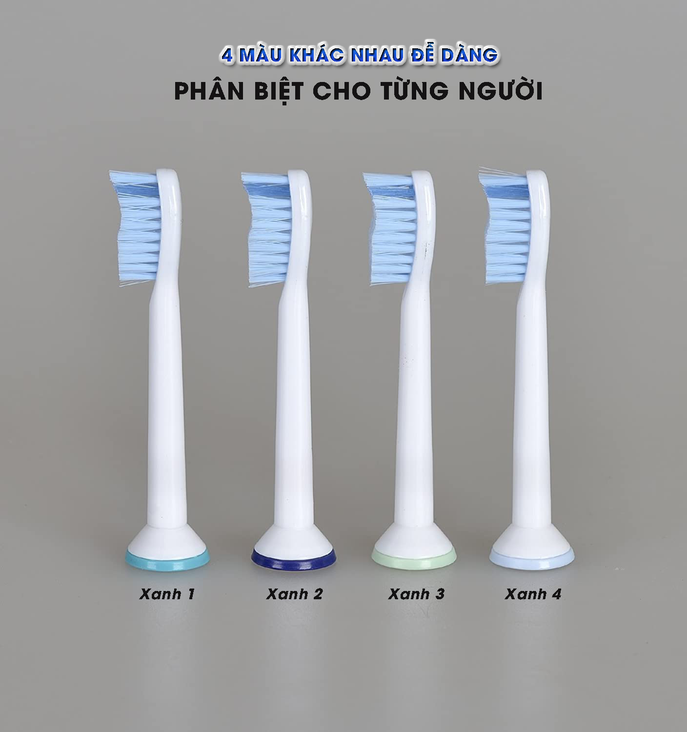 Bộ 4 đầu bàn chải đánh răng điện HX-6054 cho máy Philips Sonicare cho răng nhạy cảm HX3, HX6, HX7, HX8, HX9, R, FlexCare +, FlexCare, HealthyWhite, HydroClean, EasyClean, DiamondClean Mô tả: Các bạn đều biết mọi đầu đánh răng khi sử dụng từ 3-6 tháng đều nên thay mới để đảm bảo vệ sinh và giữ cho máy được bền. Khi mua máy, Nhà SX chỉ trang bị 1 số đầu nhất định. Vậy cần mua thêm đầu thay thế để dự phòng và thay đổi định kỳ. Thông tin: