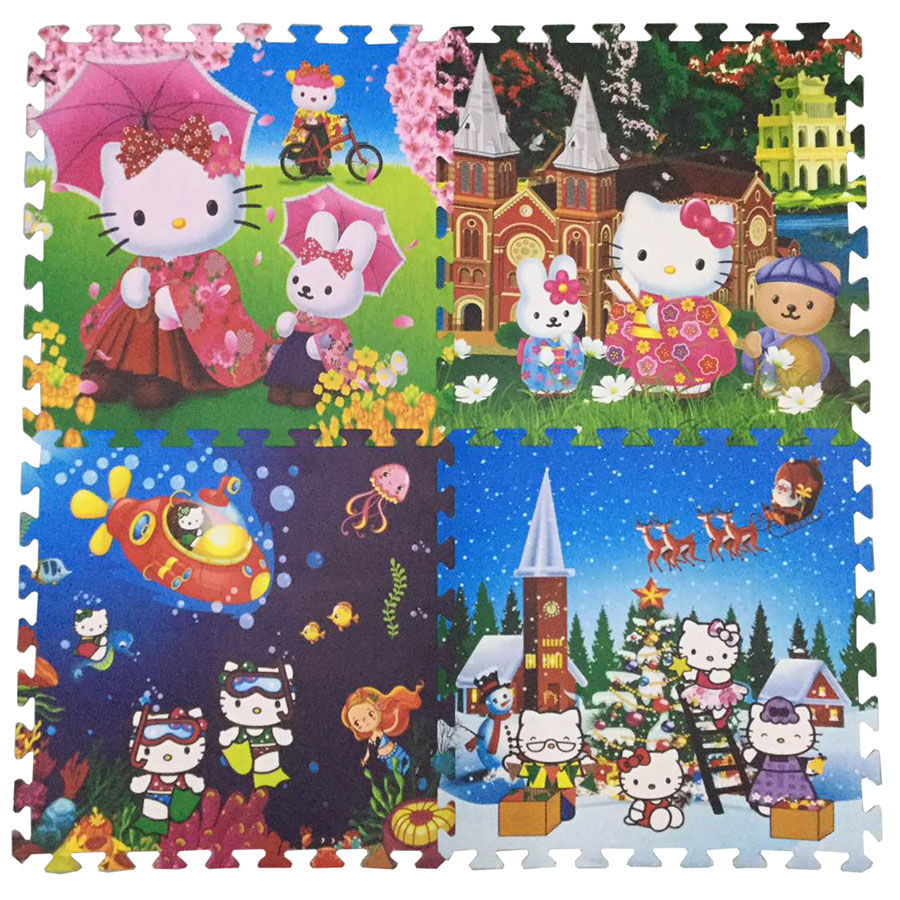 ✨Bộ 4 tấm Thảm xốp lót sàn ECOBABY an toàn cho bé - hình mèo Kitty - kích thước 1 tấm 60x60cm, độ dày khoảng 0,9-1cm