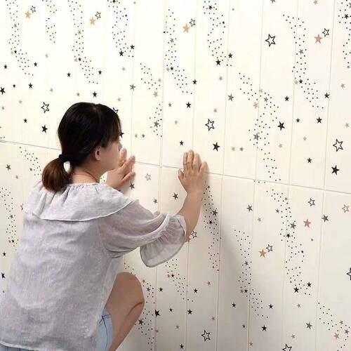 Độ dày chuẩn : 3mm Kích thước: 70*77 ( ngang 70cm, cao 77cm) Sẵn keo ở mặt sau, lột ra là dán Công dụng tấm xốp : ️Dán che khuyết điểm tường mốc,