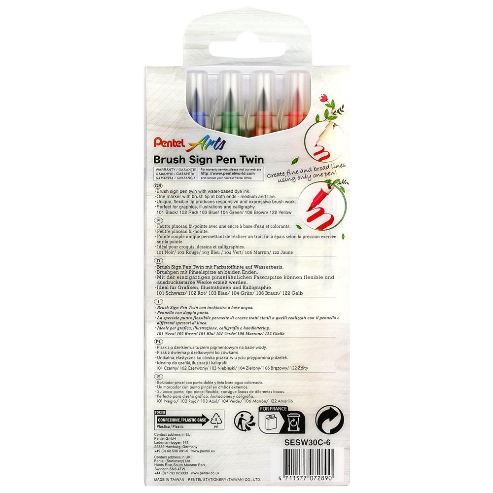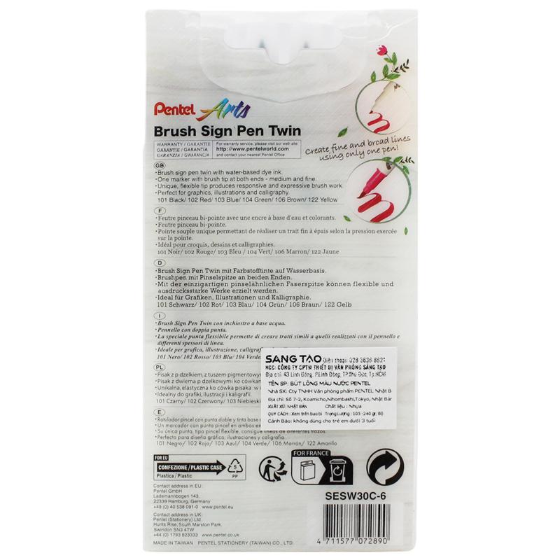 Bộ 6 Bút Lông Màu Nước 2 Đầu - Brush Sign Pen Twin - Pentel Art SESW30C-06E