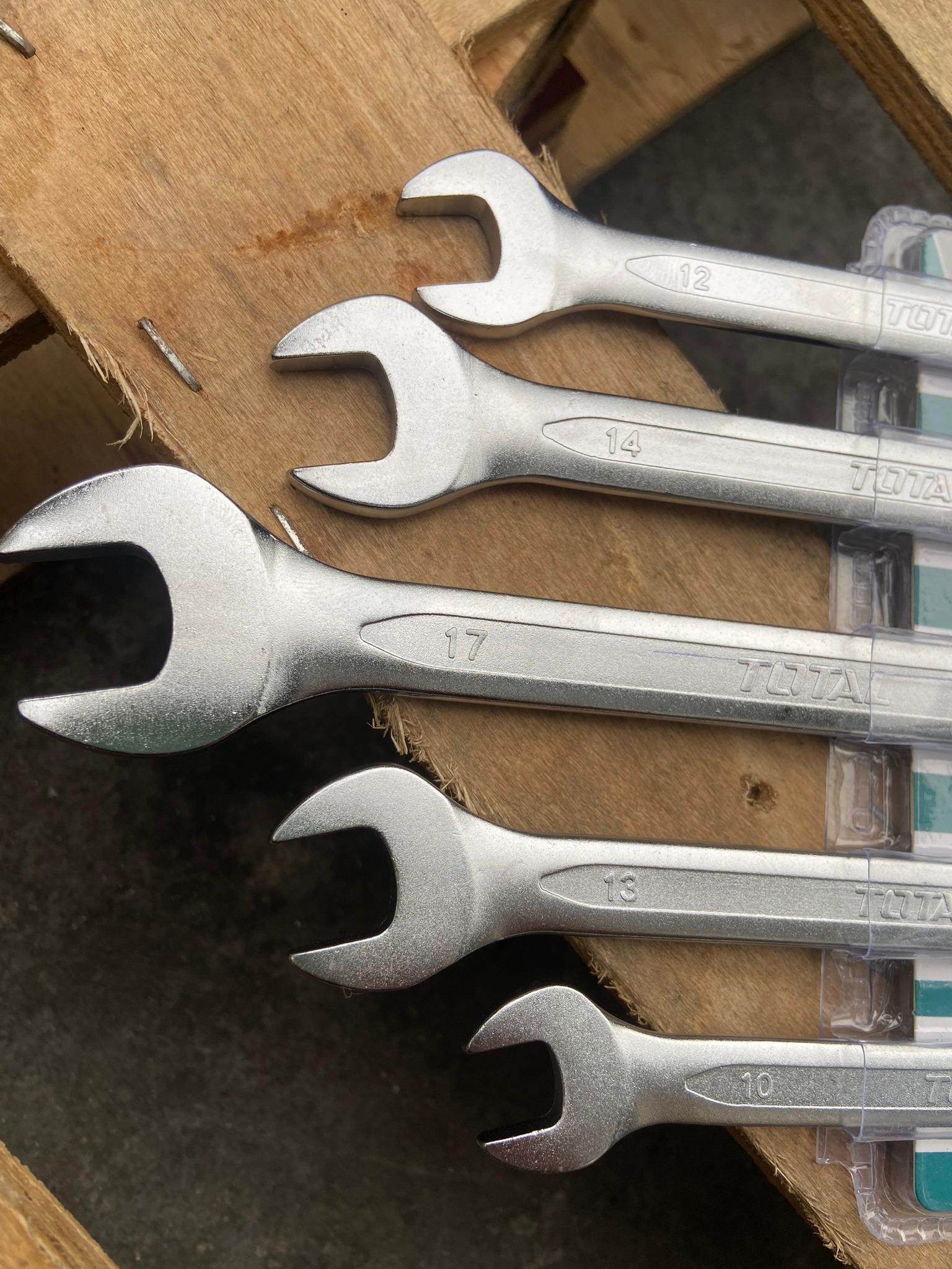 Thương hiệu đồ nghề và máy móc Total ngày càng khẳng định vị thế của mình trên thị trường, cạnh tranh thị phần với những nhãn hiệu có danh tiếng xưa giờ luôn. Total sẽ chứng minh hàng rẻ nhưng có chất lượng tốt là có thật! Total tools - Không cần bỏ số tiền lớn nhưng vẫn có cho mình những đồ nghề chất lượng. Từ những món đồ nghề đơn giản như búa, tuốc nơ vít, lục giác, cờ lê mỏ lết… được sử dụng nhiều trong gia đình cho đến những máy móc dùng điện và pin Lithium-Ion như máy khoan, máy đục bê tông, máy cưa lọng, máy cắt sắt, máy mài góc… công suất mạnh, hay được sử dụng trong nhiều ngàng công nghiệp nặng. Tất cả sản phẩm do Total sản xuất đếu khá là chất lượng và có mức giá rẻ, không như các ông lớn khác là Makita, Stanley… sản phẩm tuy tốt nhưng có giá thánh khá là đắt! Bạn thắc mắc vì sao mà công cụ - dụng cụ Total có giá rẻ ư?! Vì họ không tốn bất cứ tiền quảng cáo, quảng bá thương hiệu nào cả, từ đó mà giá thành sản phẩm rẻ! Thông số kĩ thuật -Mã sản THT102266 -Nhà sản xuất: Total -Bộ 6 cờ lê vòng miệng -Kích thước: 8-17mm 8mm,10mm,12mm,13mm,14mm,17mm. Làm bóng -Đóng gói trong nửa vỉ đôi