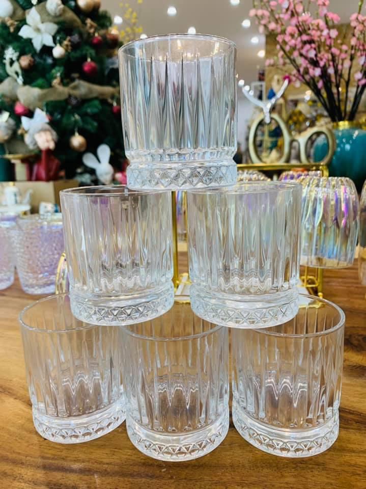 ✨Bộ 6 cốc thủy tinh chịu nhiệt cao cấp vân dọc dùng uống nươc shoặc ruou tây sang trọng