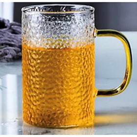 ✨BỘ 6 CỐC THỦY TINH UỐNG NƯỚC CHỊU NHIỆT 350ml CRYSTAN CAO CẤP VÂN DẬP NỔI QUAI VÀNG - ANTH413