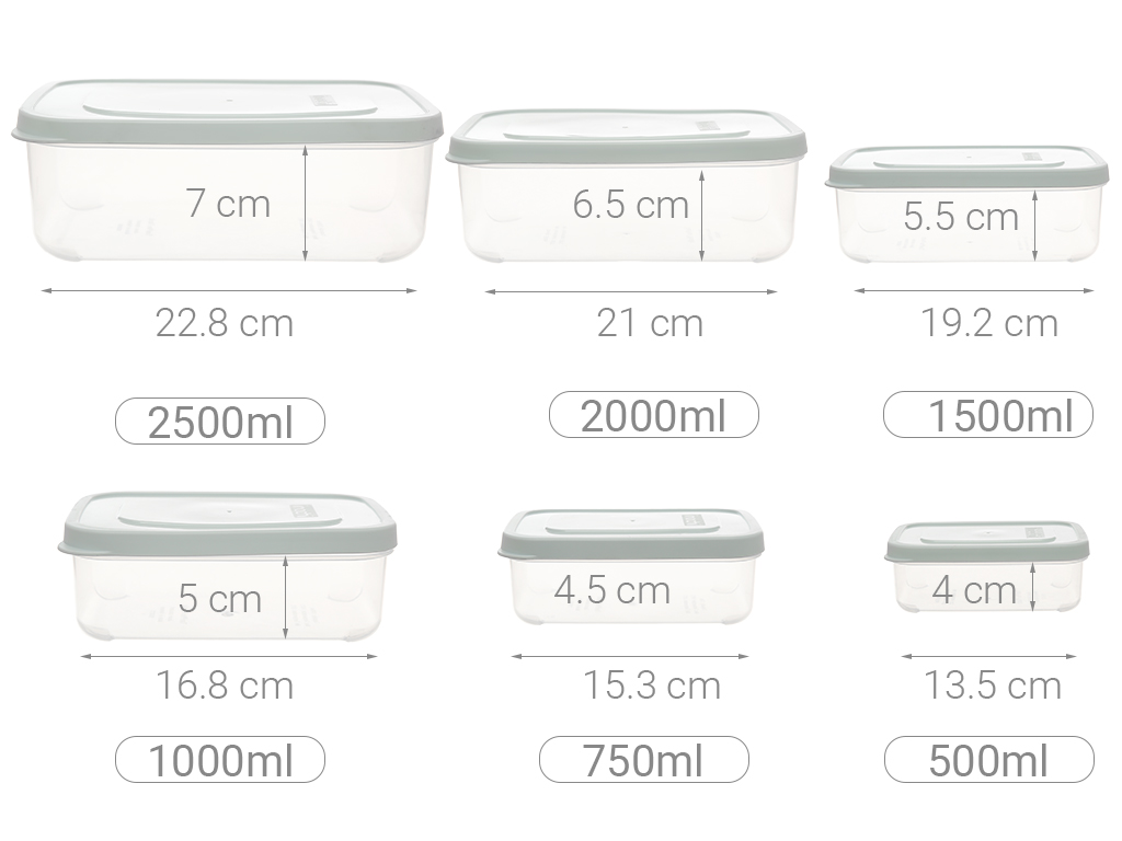 ✨Bộ 6 hộp thực phẩm chữ nhật Hokkaido 500-750-1000-1500-2000-2500ml