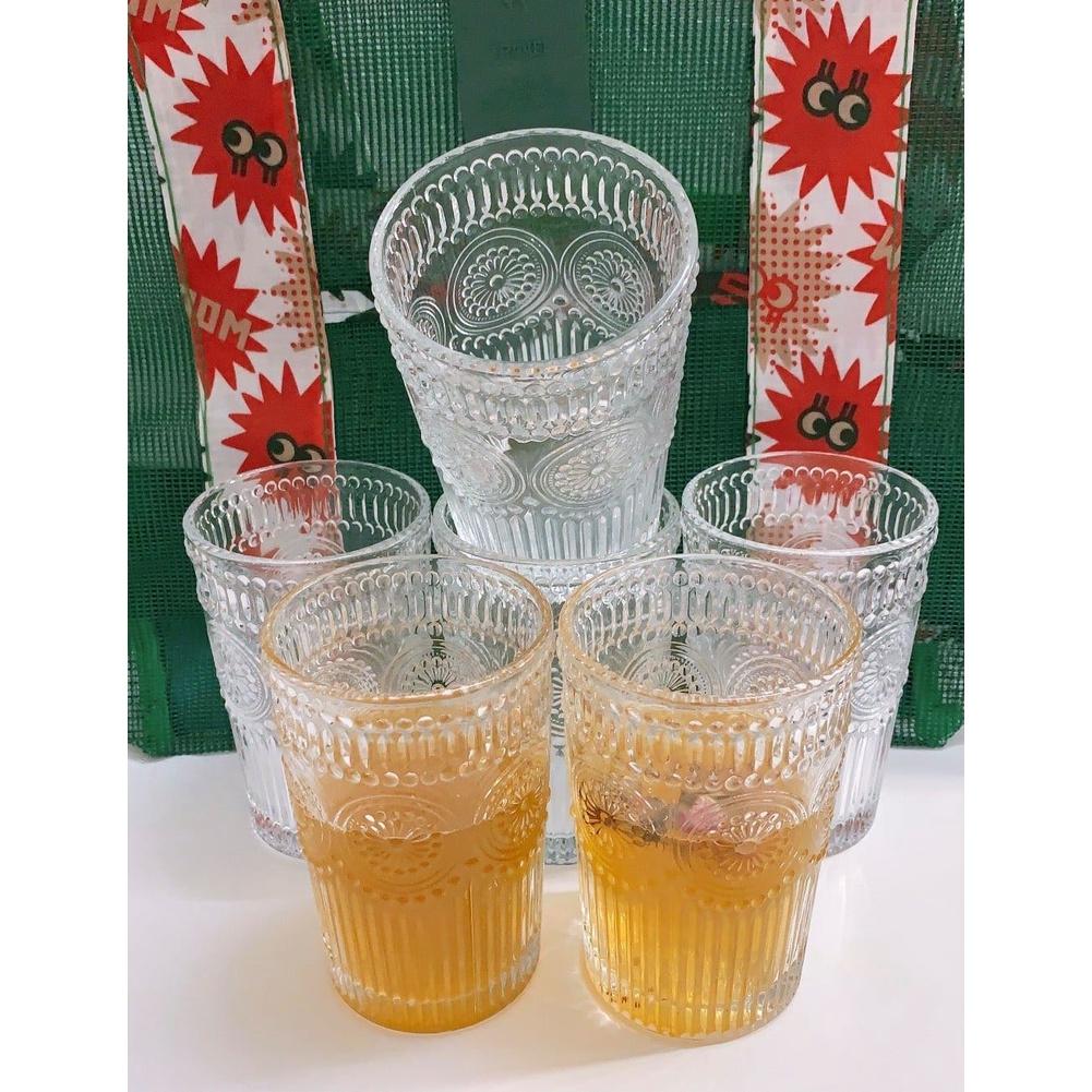 ✨Bộ 6 ly thủy tinh chịu nhiệt cao cấp dùng uống nước hoặc rượu tây vân trống đồng trắng không viền vàng 365ml
