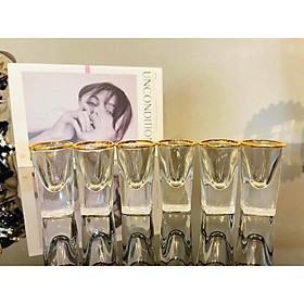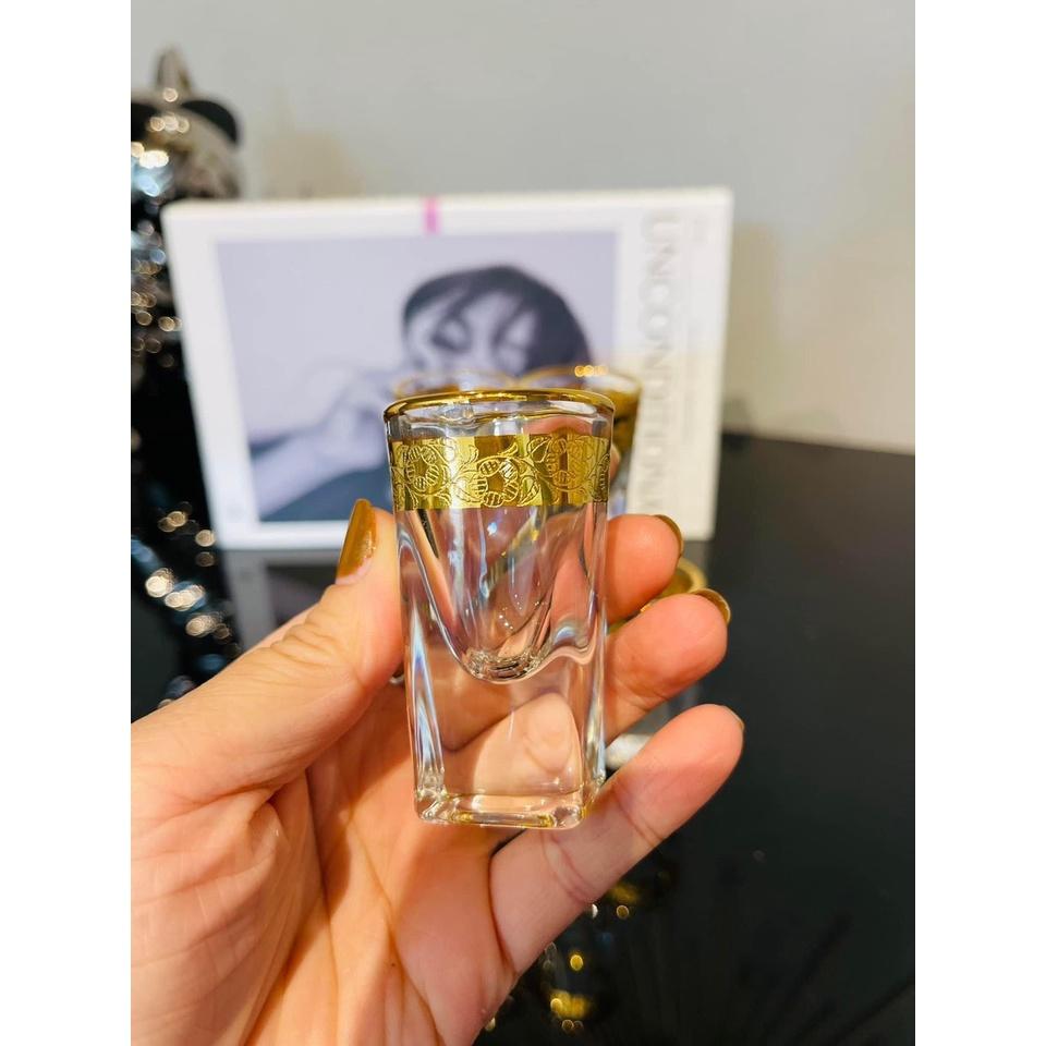 ✨BỘ 6 LY THỦY TINH UỐNG RƯỢU KHẢM VÀNG CAO CẤP