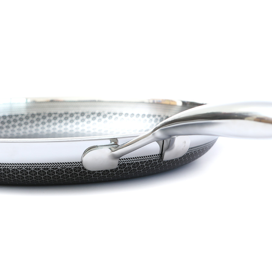 Tay cầm bằng Inox đúc rỗng với công nghệ đặc biệt ghép nối với thành chảo nên không nóng, nhẵn và sáng bóng nên dễ dàng rửa sạch và luôn đẹp, sang trọng