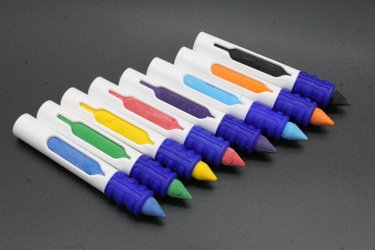 Bút sáp màu vô cùng tiện lợi, có thể sử dụng trên các bề mặt trơn nhẵn như bảng, kính, nhựa.
