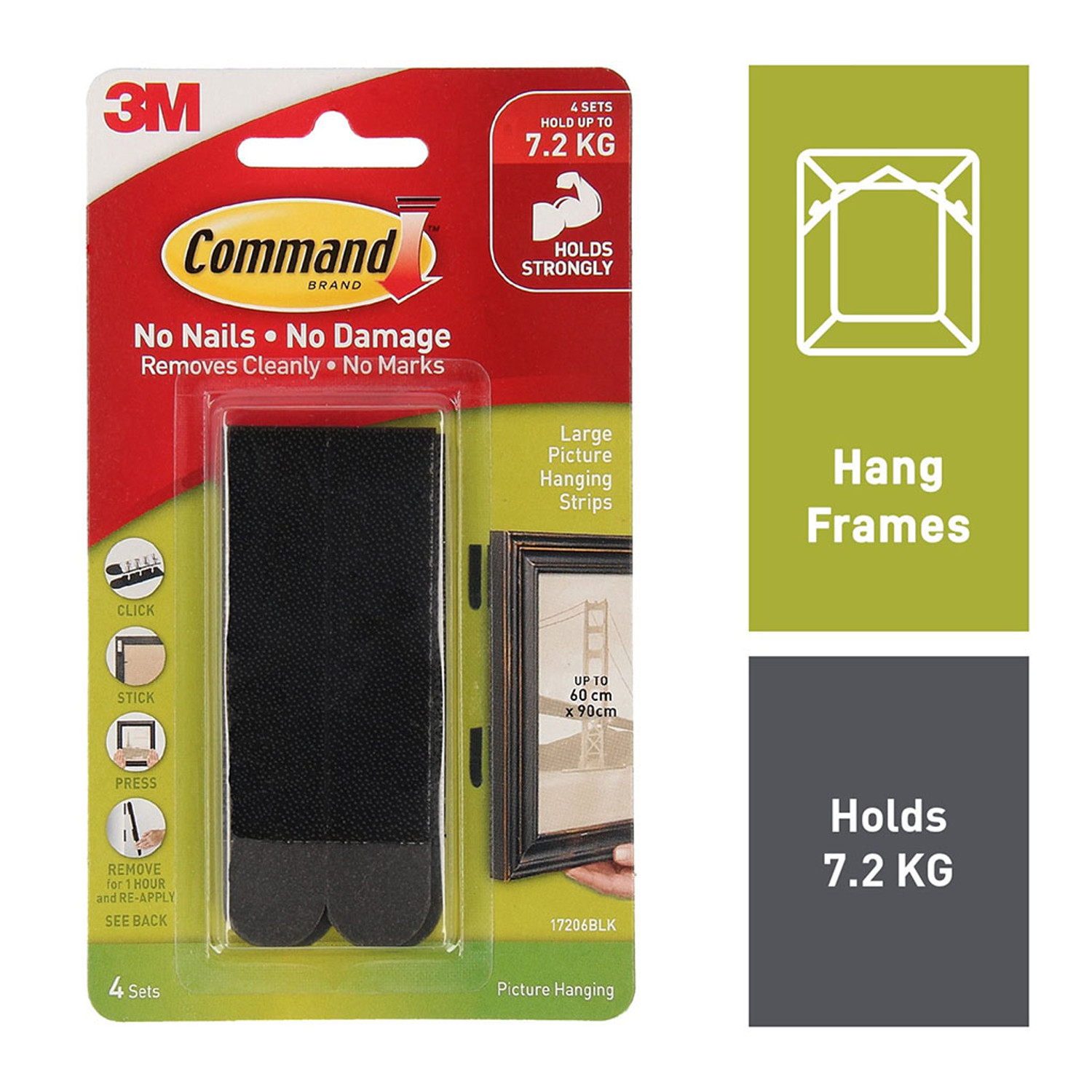 - Tên sản phẩm: Bộ 4 miếng móc treo tranh cường lực siêu dính 7.2kg Command 3M 17206BLK