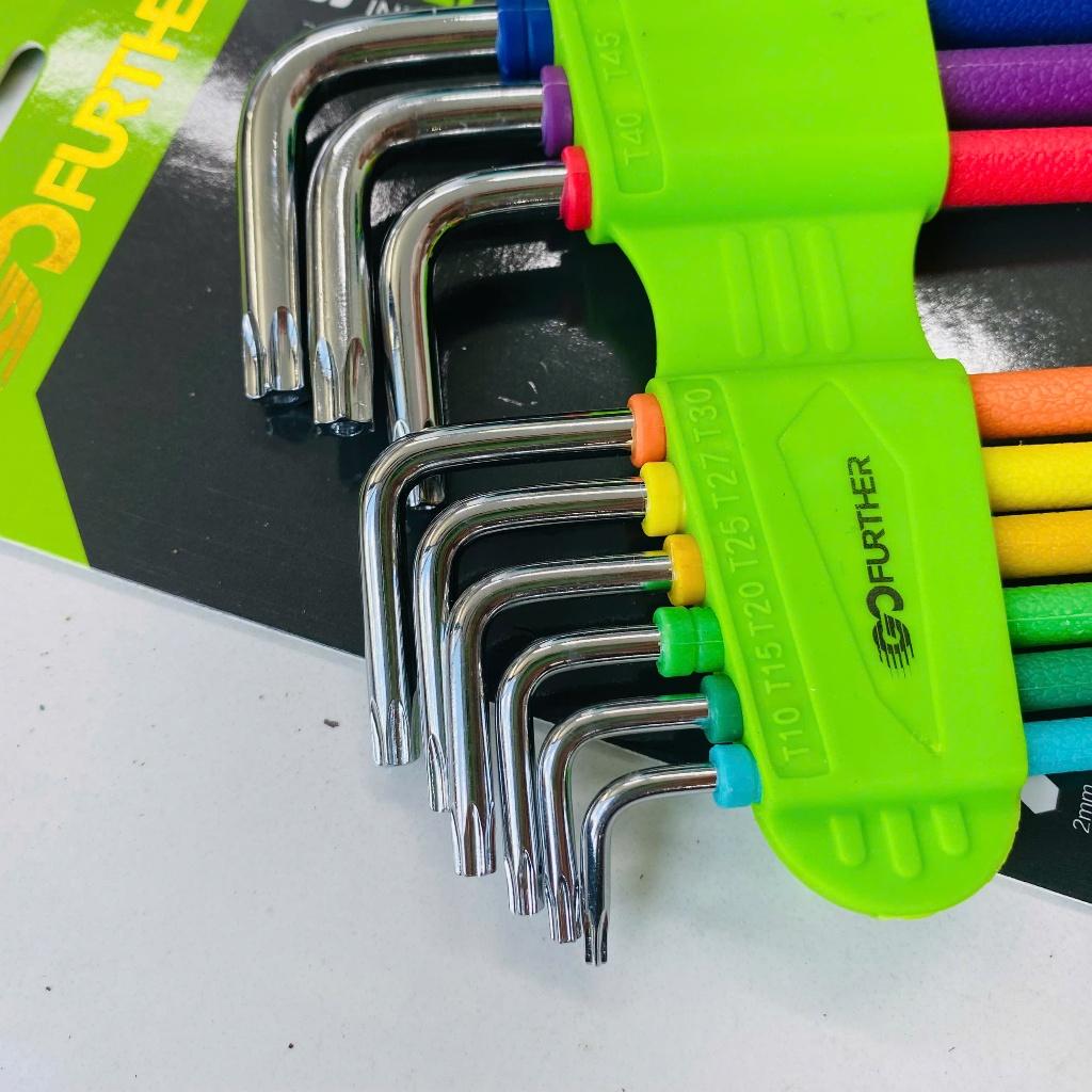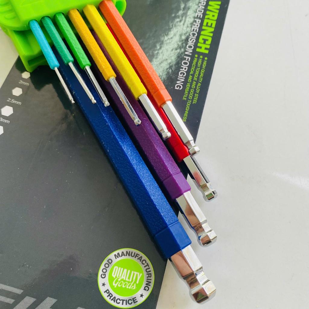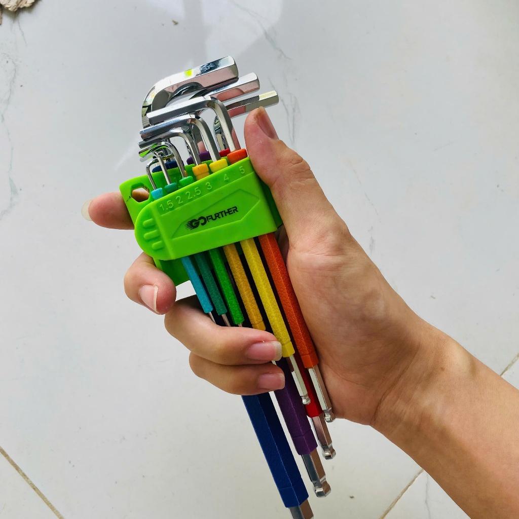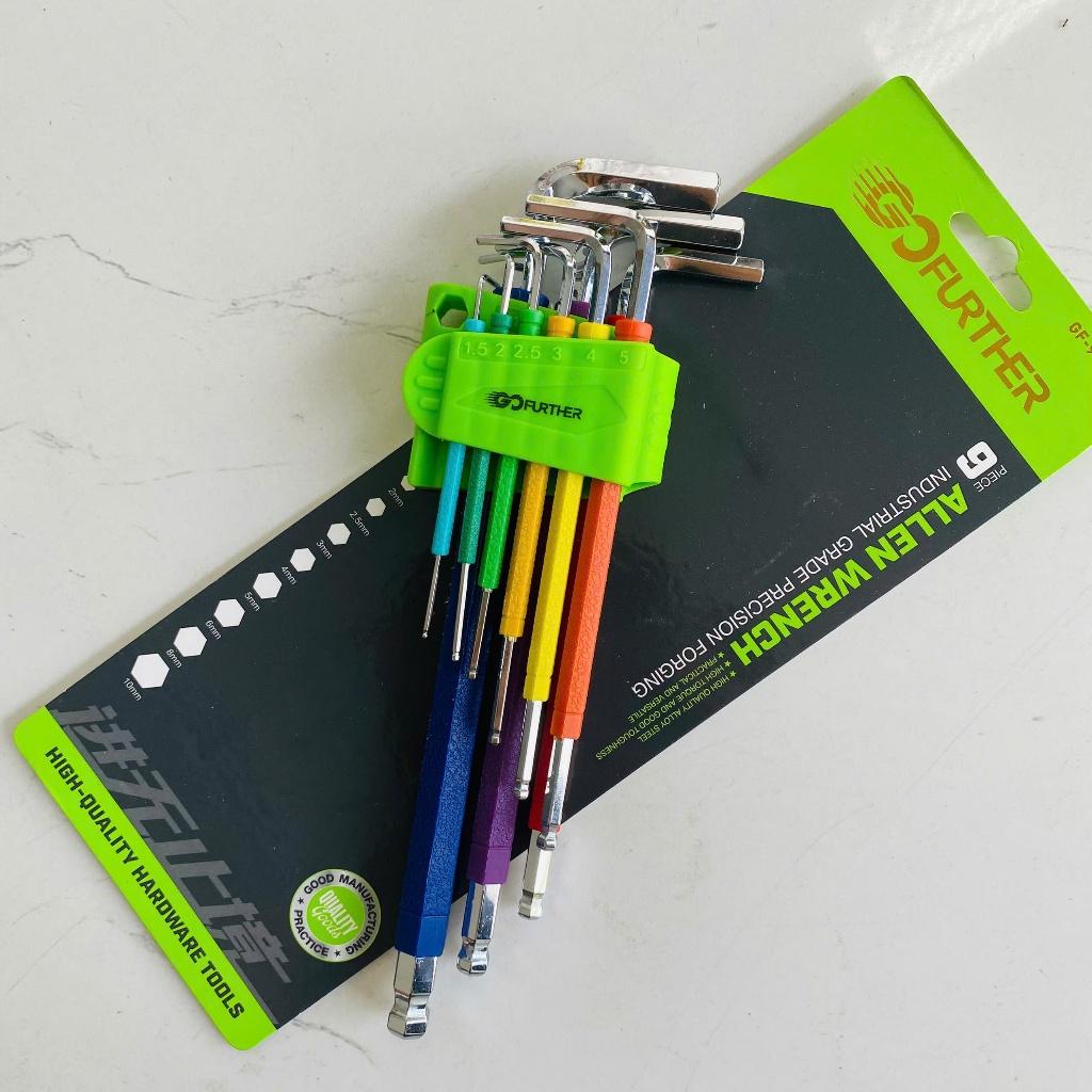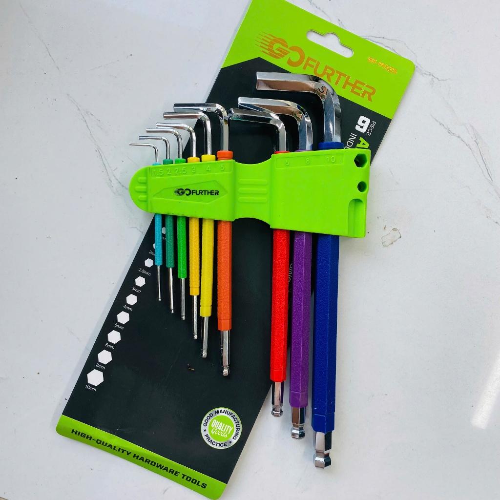 ✨Bộ 9 cây lục giác màu GOFUTHER chất liệu CRV cao cấp, bộ lục giác đầu bi, đầu bông cao cấp