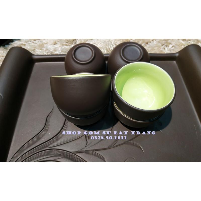 Bộ ấm chén men nâu gồm: 6 chén 1 ấm 7 đĩa. Màu men, nâu, xanh lòng trắng, xanh, dùng để thưởng trà trưng bày nghệ thuật. Sản xuất tại Bát Tràng, đun ở nhiệt