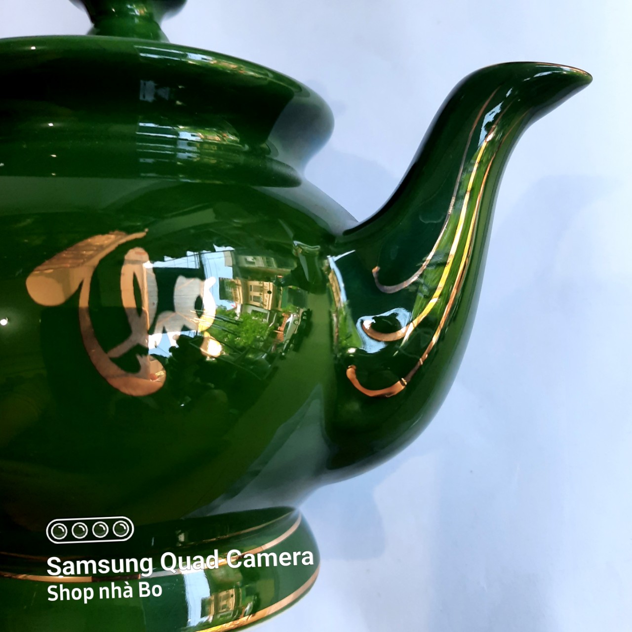 ✨Bộ ấm chén Bát Tràng phú quý men xanh lục ngọc bảo họa tiết Phúc - Lộc - Thọ vẽ vàng 24k