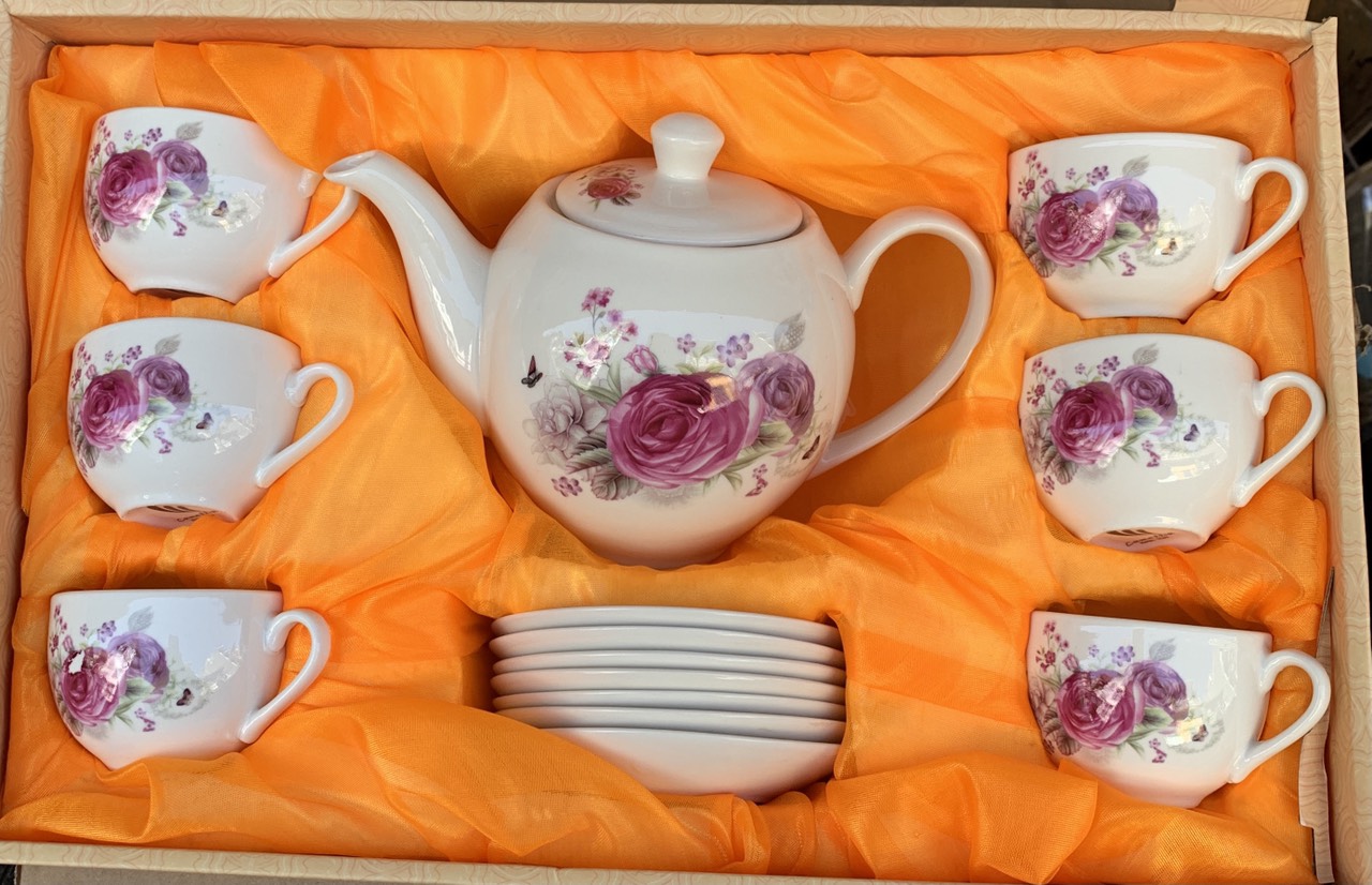 Bộ ấm chén sứ Hoa Hồng kèm khay gốm Bát Tràng (🌷0987220736)#amtra#amchen#binhtra#ấmchénquàtặng